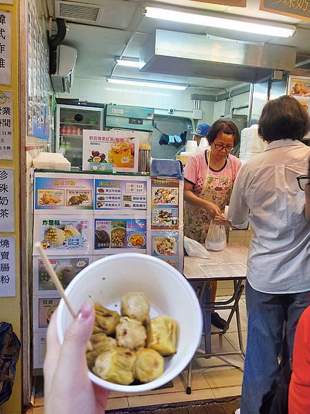 出來了之後Stella推薦了路邊的燒賣,10塊錢7顆!!在香港當利真的奇蹟便宜的價格,原本想說等等還要吃晚餐怕吃不下晚餐,但最後經過慫恿還是決定買來吃看看