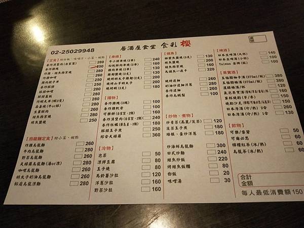 定食、烏龍定食價格坐落於200多塊,其他也有串燒、炸物、冷物、煮物或是日本酒…