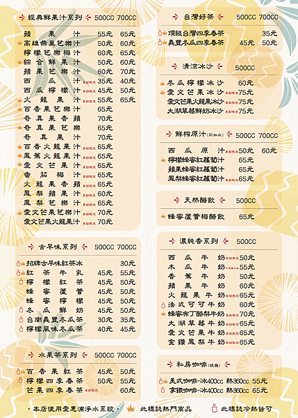 也附上菜單~~果汁我覺得都還算平價,重點是平價分量又足夠,有的時候晚餐來點一杯果汁就超有飽足感